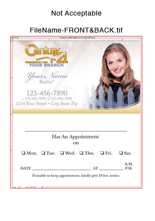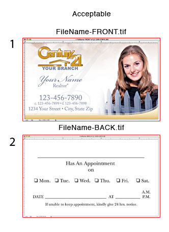 We require you send one file per side. Files sent with both front and back on one page will not be accepted.
