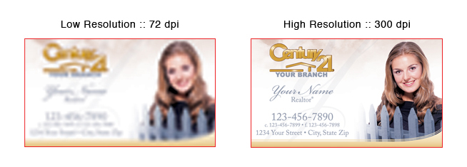 Raster graphics, such as TIF and JPG files must have a minimum resolution of 300 DPI (dots per inch). Images with less than 300 DPI will reproduce poorly on the press, causing the image appear fuzzy and pixilated.