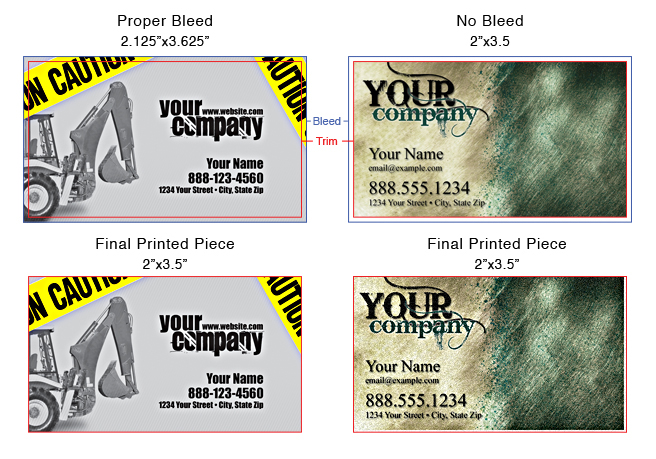 Any images that are meant to extend into the edge of your design must extend into the bleed area, within a minimum of 1/16 of an inch all around (0.0625").