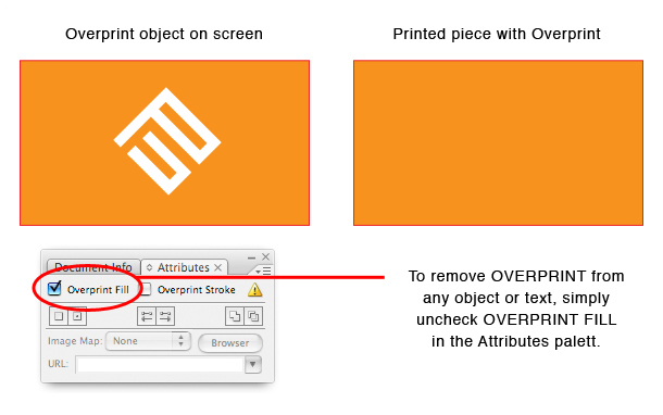 When an object(s) is set to OVERPRINT, any object directly underneath it, will print on top of it. It is highly recommended to turn off OVERPRINTS that may be on any object(s) or text.